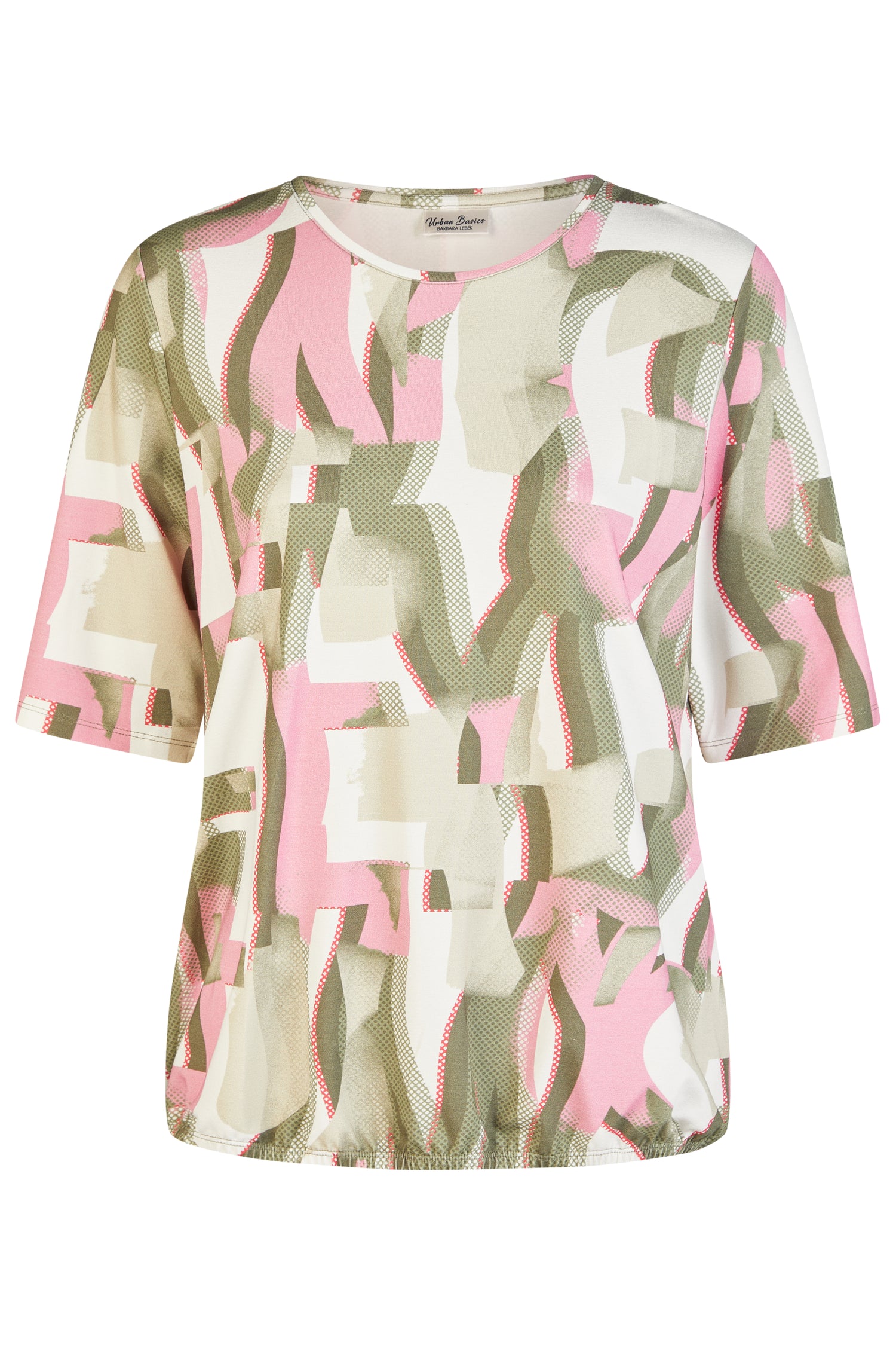 1037.8 Stretchy Ruched O-Neck S/L Dress Magenta/Cream