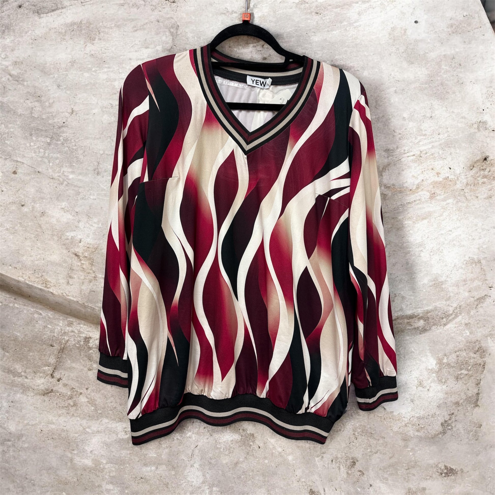 3825 Sport Lux Bands Printed V-Neck Top Wine Red