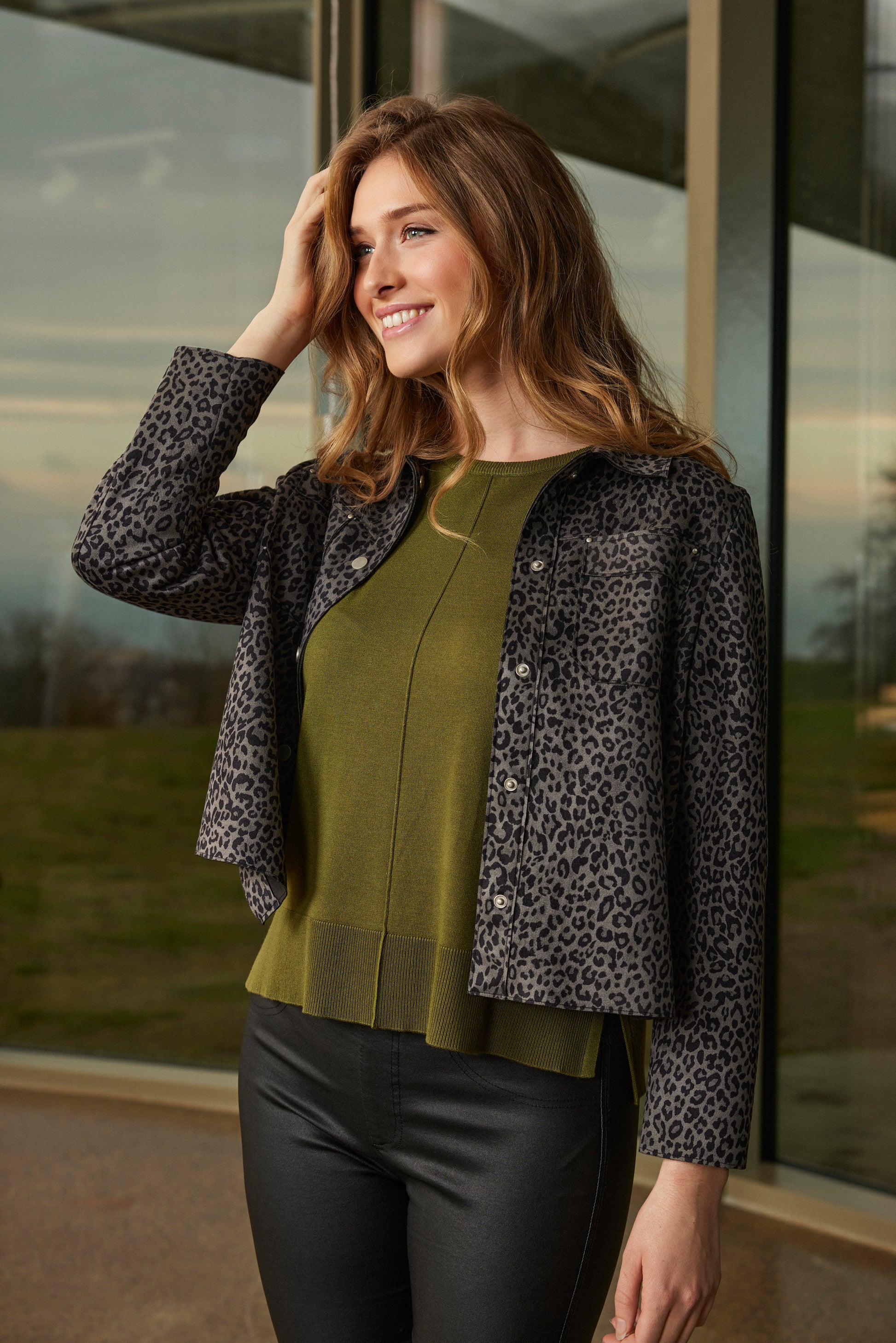 6880/6438 Leopard Print Faux Suede Jacke Grey